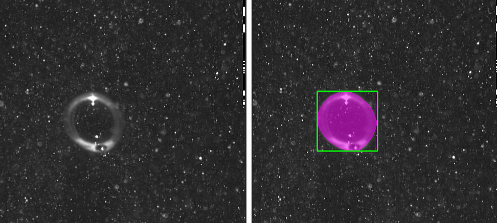 In environments such as bioreactors, medium suspended particles often interfere, creating background textures that statistically resemble bubbles. The high-resolution branch of the Revealer system plays a critical role here, filtering non-spherical noise through fine morphological features and significantly improving the signal-to-noise ratio.