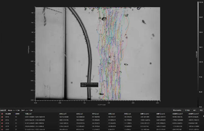 Trajectory tracking: Supports the calculation and visualization of macro indicators such as duration, average velocity and direction vector of the trajectory of specified bubbles or bubble swarms.