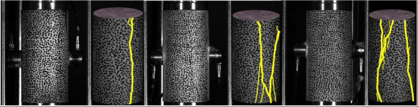 3. The crack evolution patterns revealed by Digital Image Correlation (DIC) provide important experimental evidence for developing damage degradation models, demonstrating that High-Speed 3D-DIC has significant potential in rock mechanics research and engineering safety assessment.